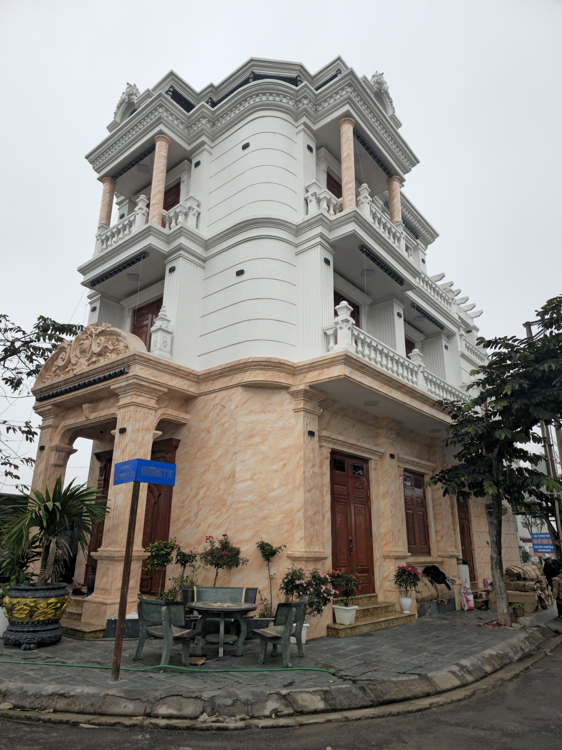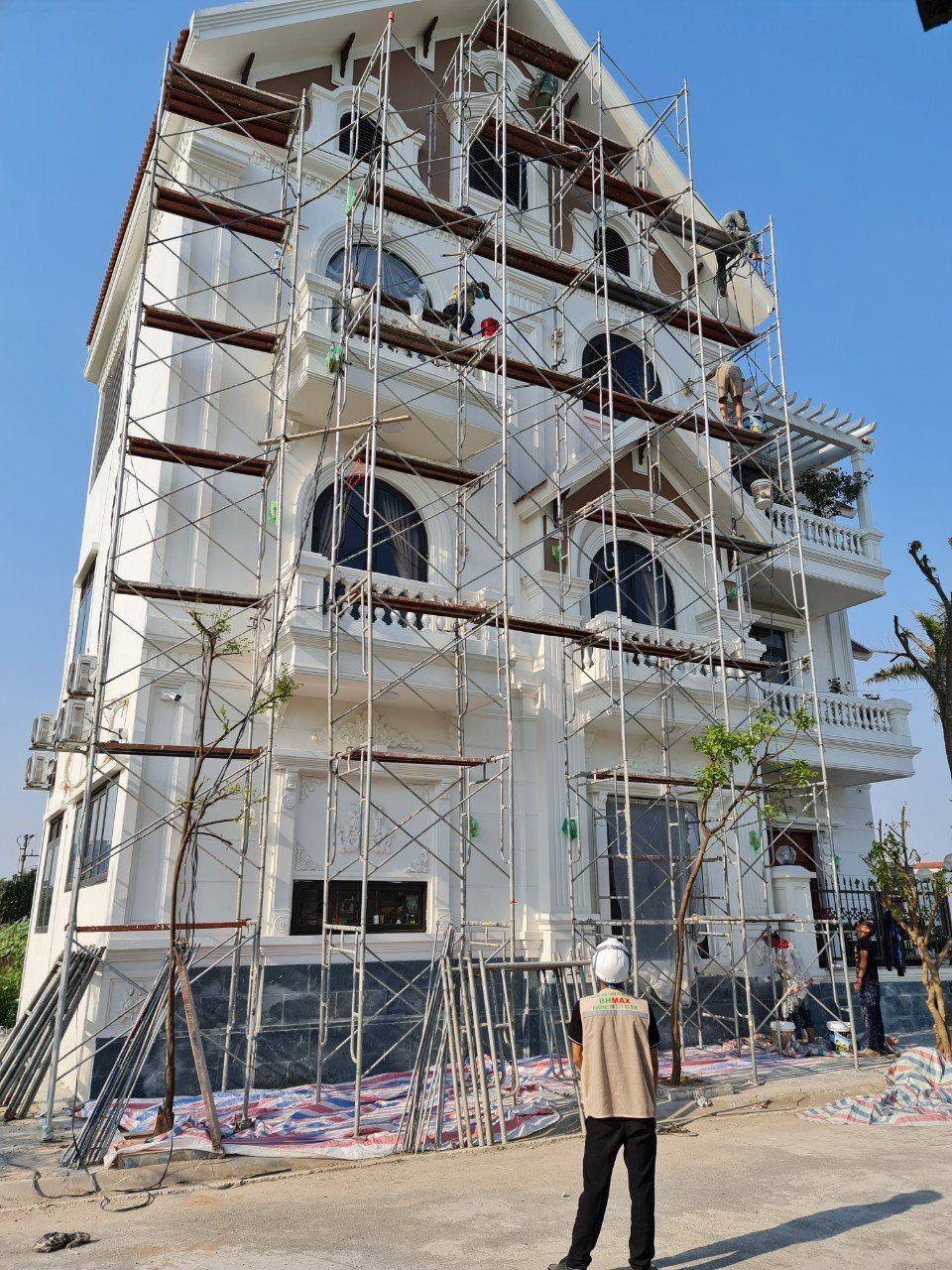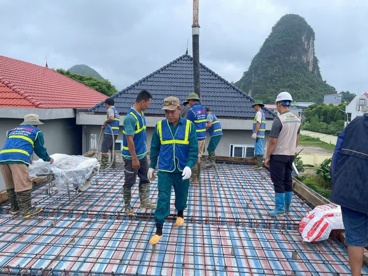 Một công trình tại khu vực ngoại ô với khung cảnh thiên nhiên hùng vĩ. Các công nhân của BHMAX đang hoàn thiện các bước cuối cùng trong quy trình thi công, mang lại sự hoàn mỹ cho từng chi tiết.
