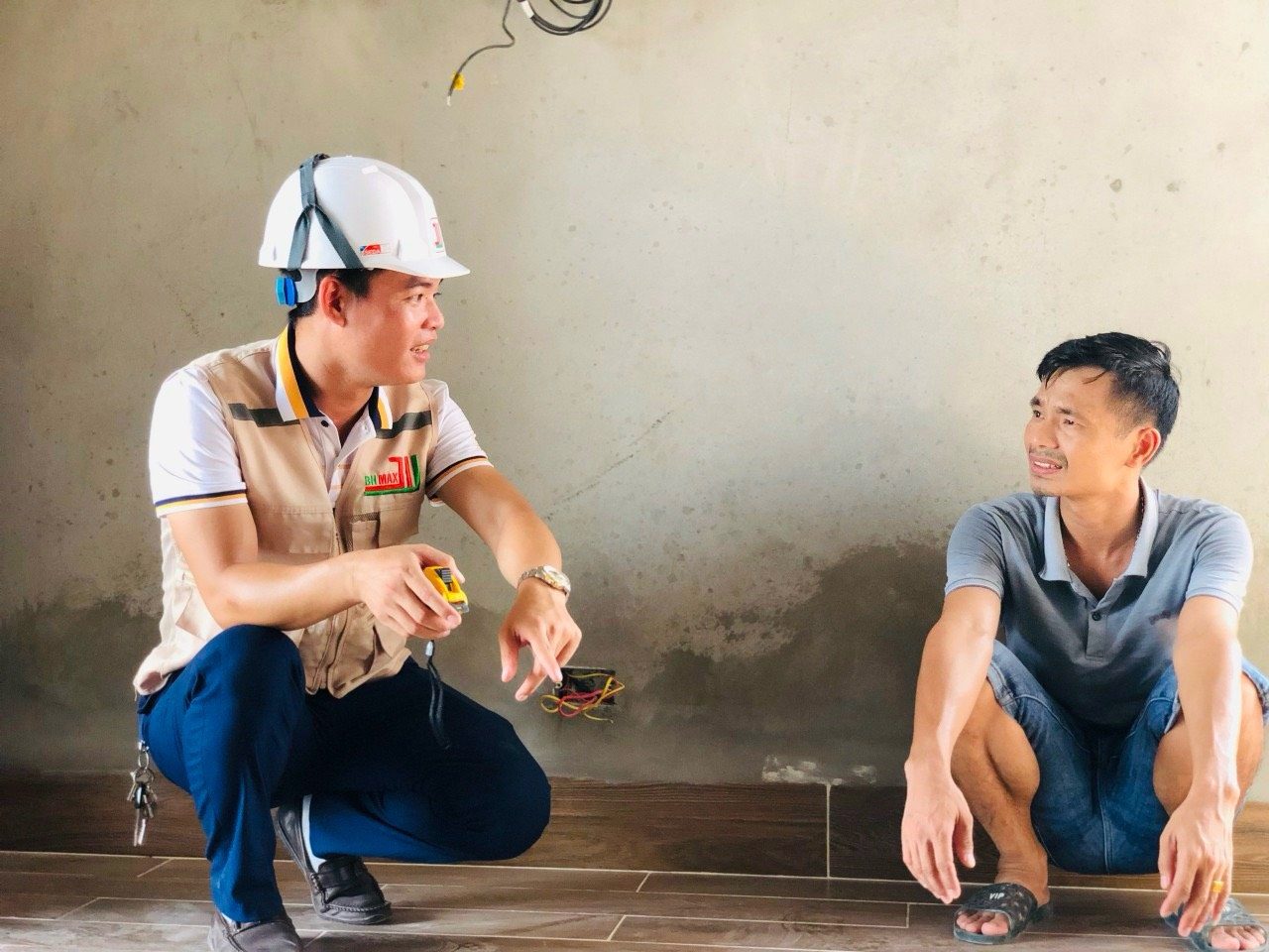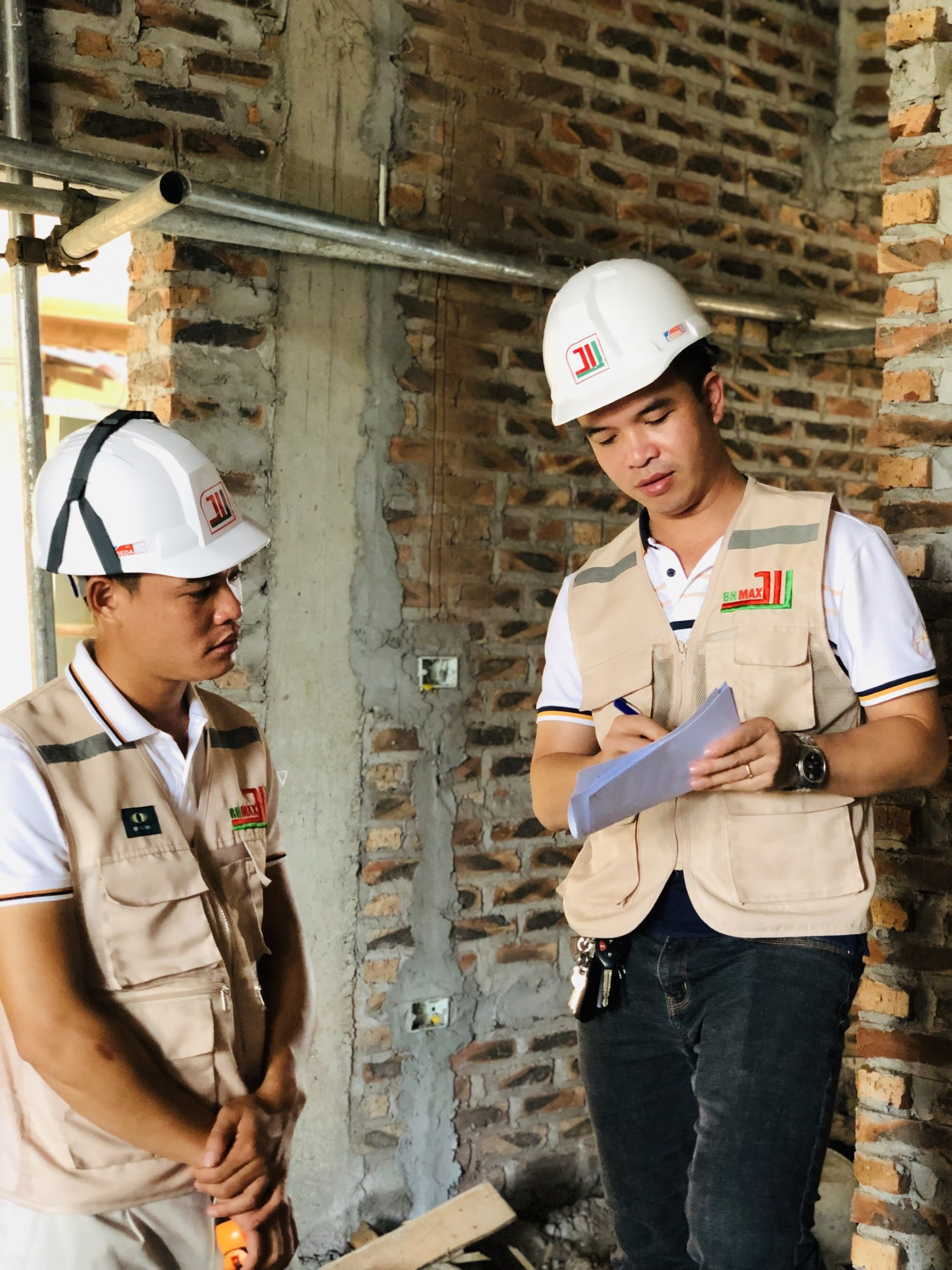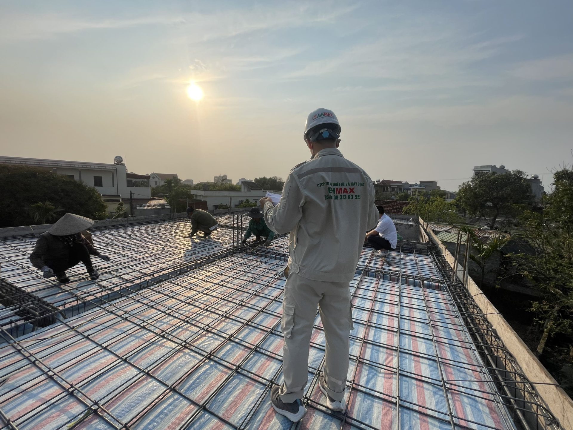 Hình ảnh ghi lại khoảnh khắc quản lý dự án và giám sát thi công tại một công trình. Đội ngũ kỹ thuật viên của BHMAX luôn theo dõi sát sao quá trình thi công, đảm bảo tiến độ và chất lượng công trình. Sự chuyên nghiệp và tận tâm trong công tác giám sát giúp BHMAX duy trì uy tín và niềm tin từ khách hàng.