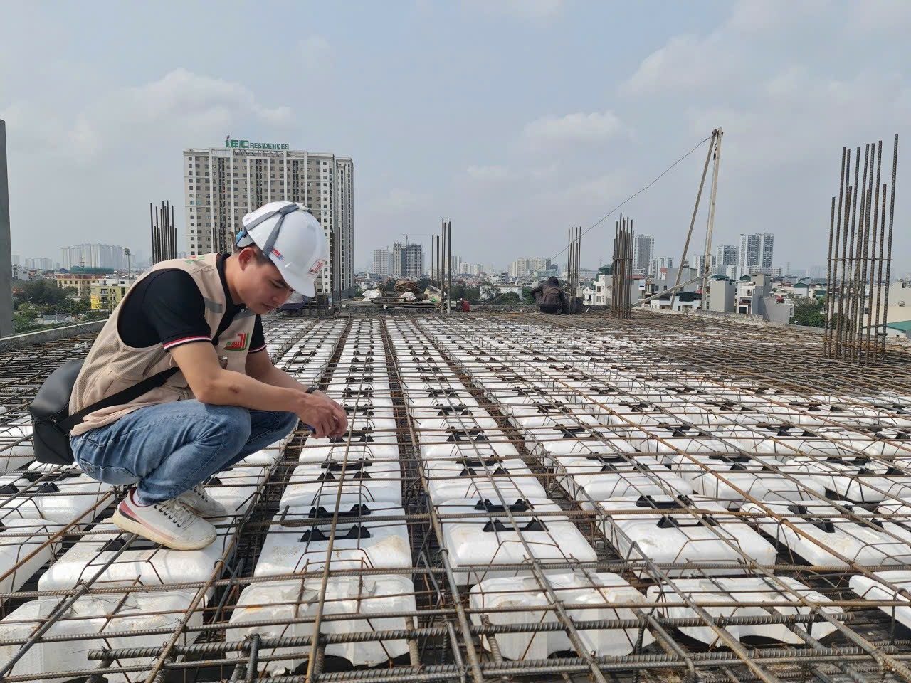 Một kỹ sư của BHMAX đang kiểm tra kết cấu của công trình tại khu vực đô thị. Với sự chính xác và tỉ mỉ trong từng khâu, BHMAX đảm bảo an toàn và độ bền vững cho mọi công trình.