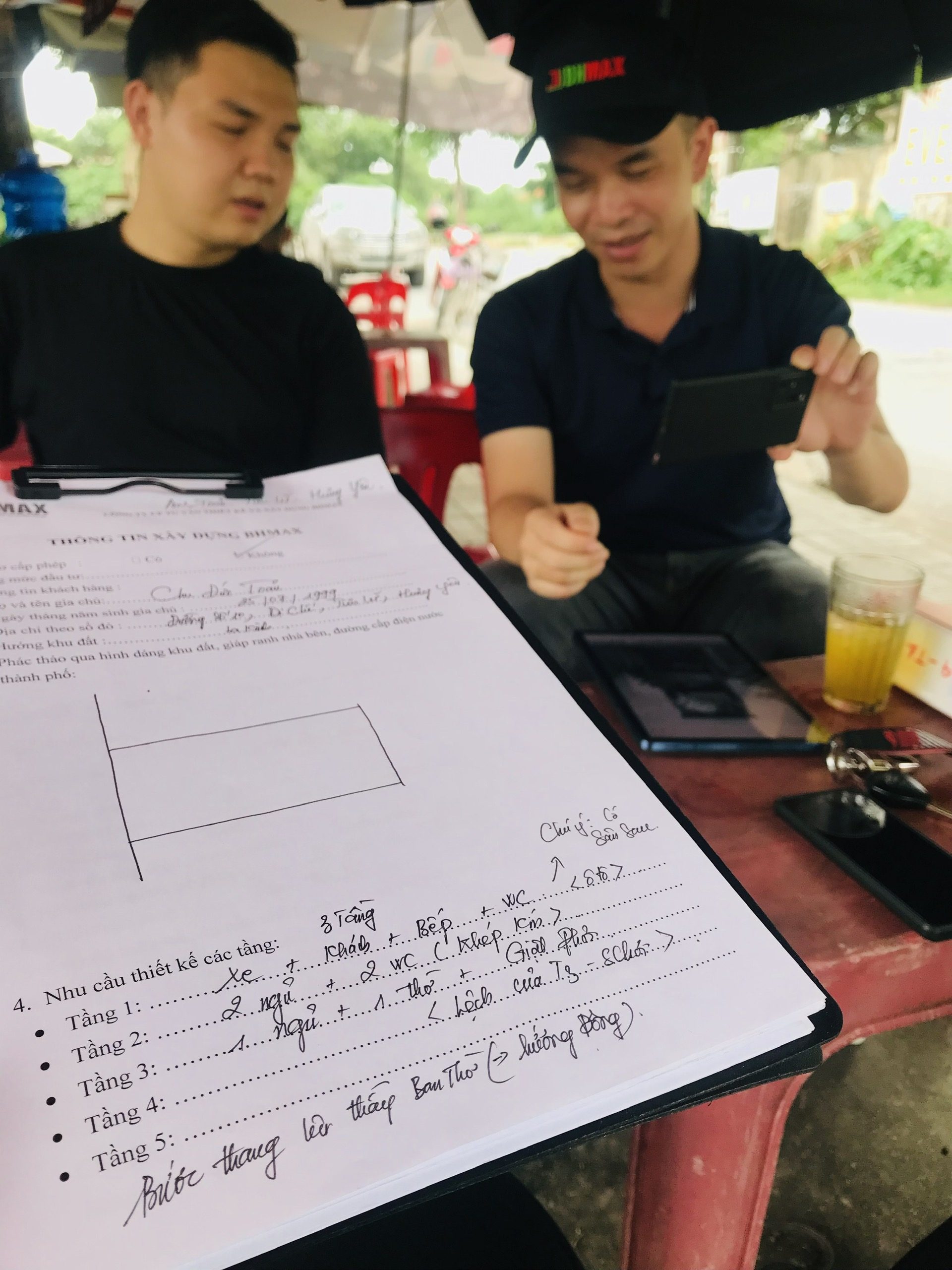 Cuộc khảo sát bắt đầu từ sáng sớm, với sự tham gia của đội ngũ kỹ sư giàu kinh nghiệm và chuyên môn cao của BHMAX. Ngay khi đến địa điểm, các kỹ sư đã tiến hành gặp gỡ và trao đổi với khách hàng, người trực tiếp sở hữu mảnh đất. Đây là bước đầu tiên để BHMAX hiểu rõ hơn về các yêu cầu và mong muốn của khách hàng đối với công cụ sắp xếp được xây dựng. Trong cuộc gặp gỡ này, những ý tưởng cấm đầu về thiết kế, công năng sử dụng, cũng như các yếu tố phong thủy đã được đưa ra thảo luận.