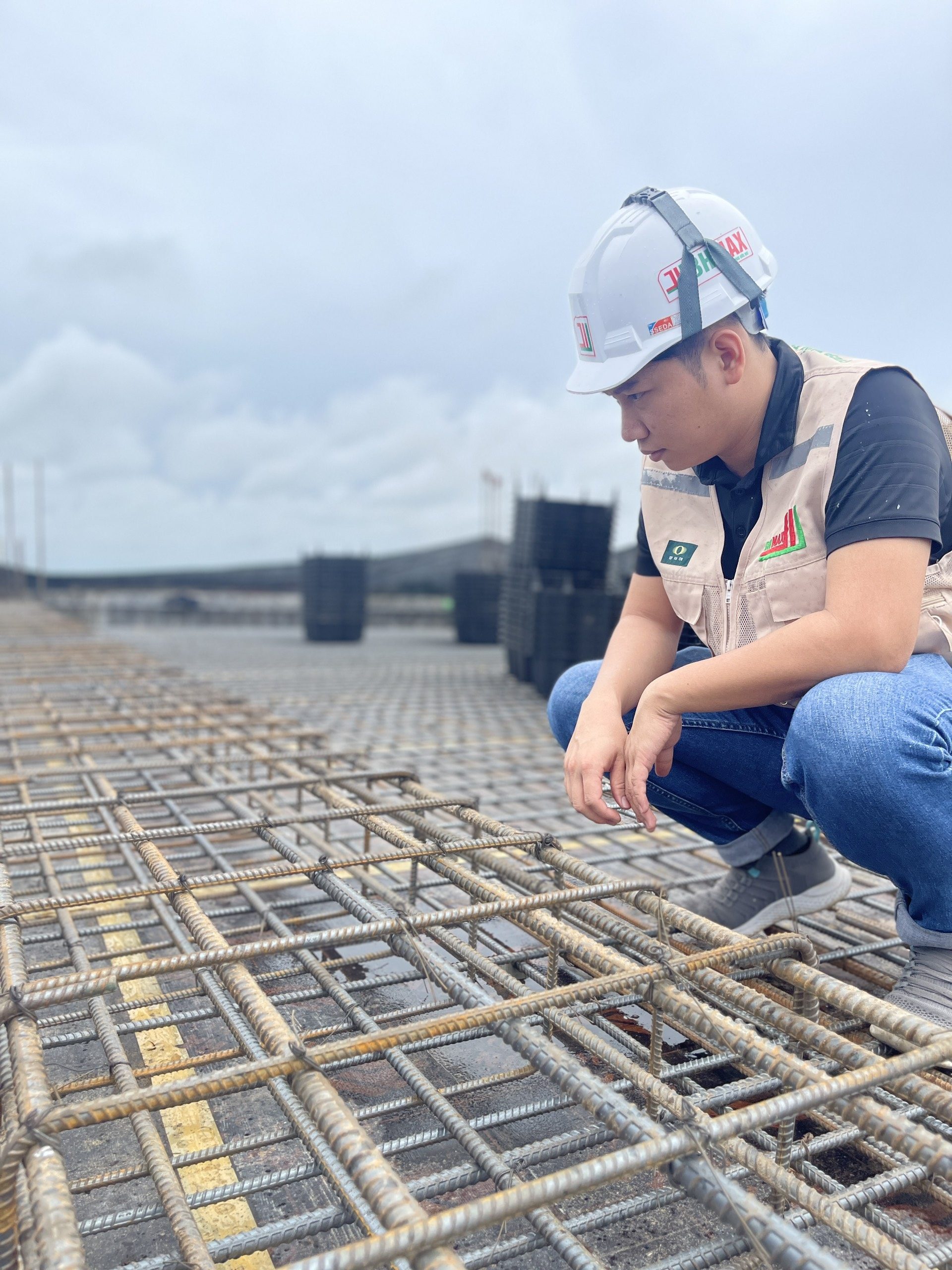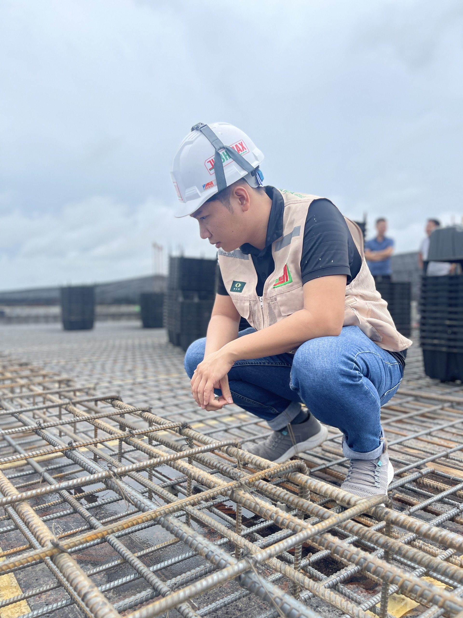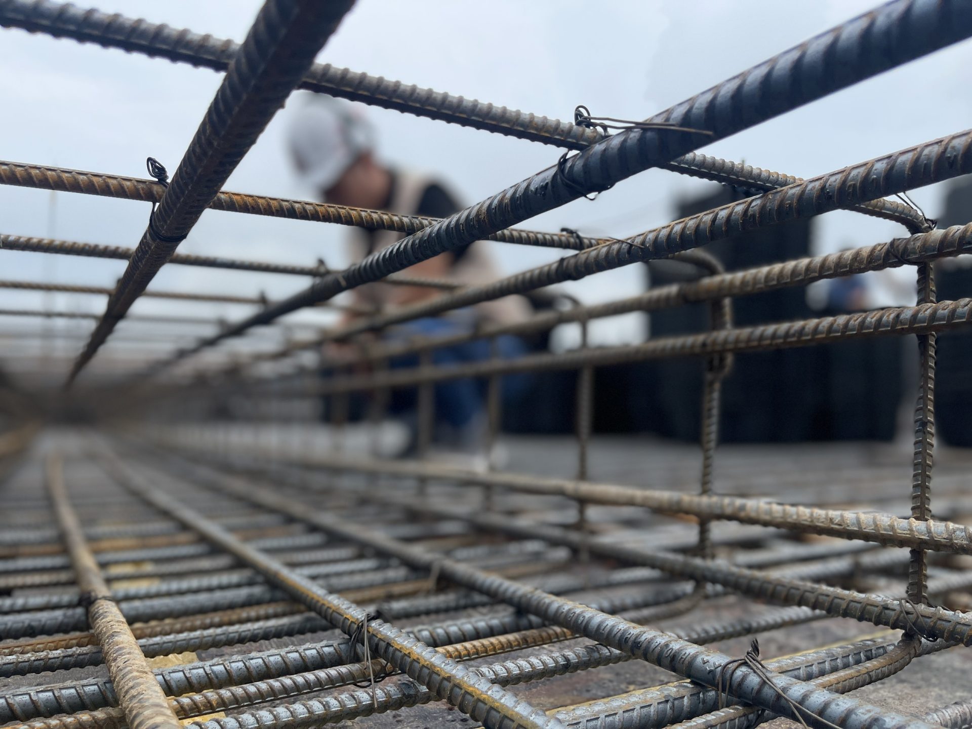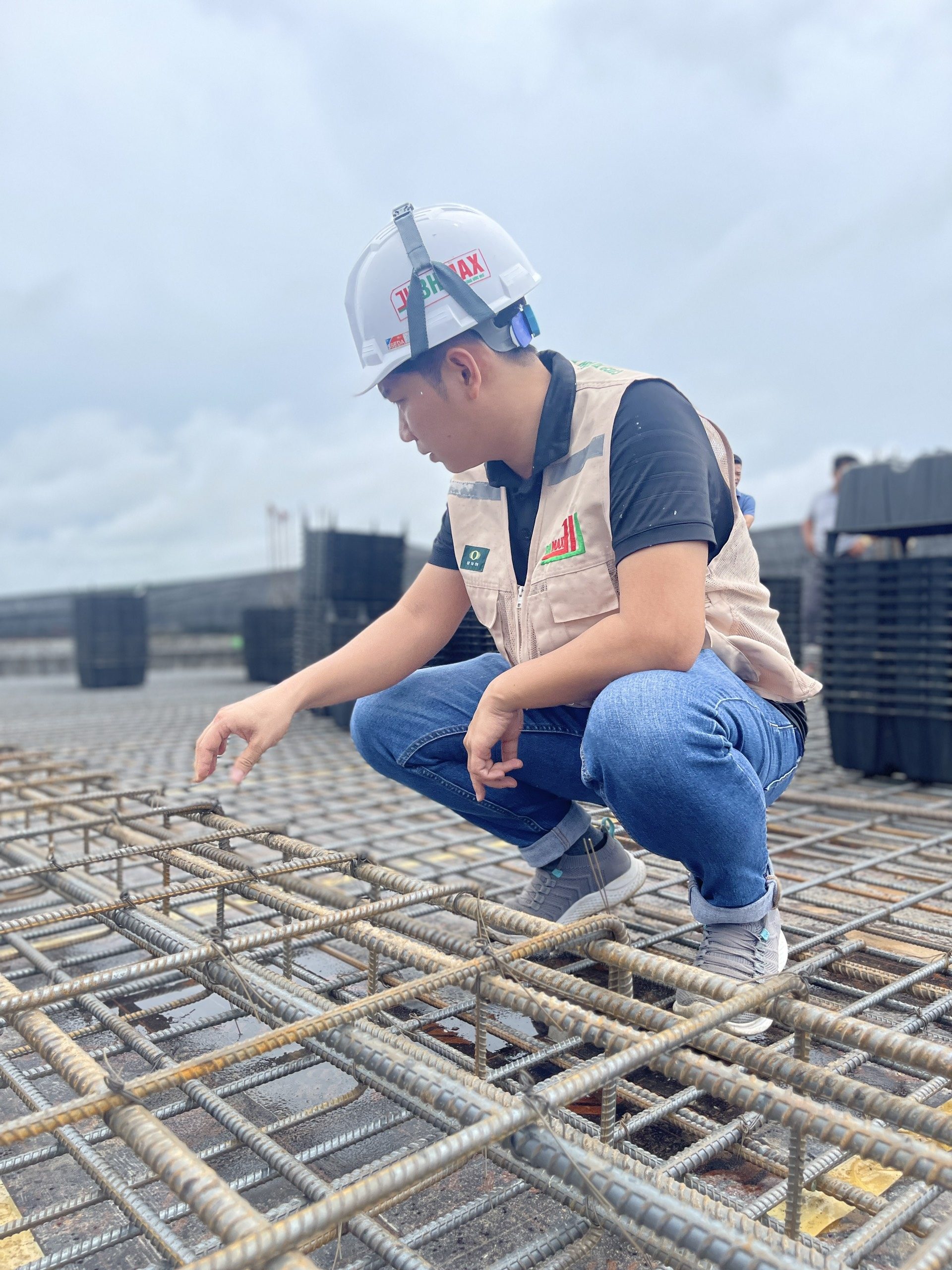 Việc lắp ráp các thanh thép là bước quan trọng nhất trong quá trình thi công sàn hộp. Các kỹ sư BHMAX luôn tuân thủ nghiêm ngặt các tiêu chuẩn kỹ thuật, đảm bảo các thanh thép được lắp ráp đúng vị trí và buộc chặt chẽ. Quá trình này đòi hỏi sự tỉ mỉ và chính xác, bởi chỉ cần một sai sót nhỏ cũng có thể ảnh hưởng đến độ bền của công trình.