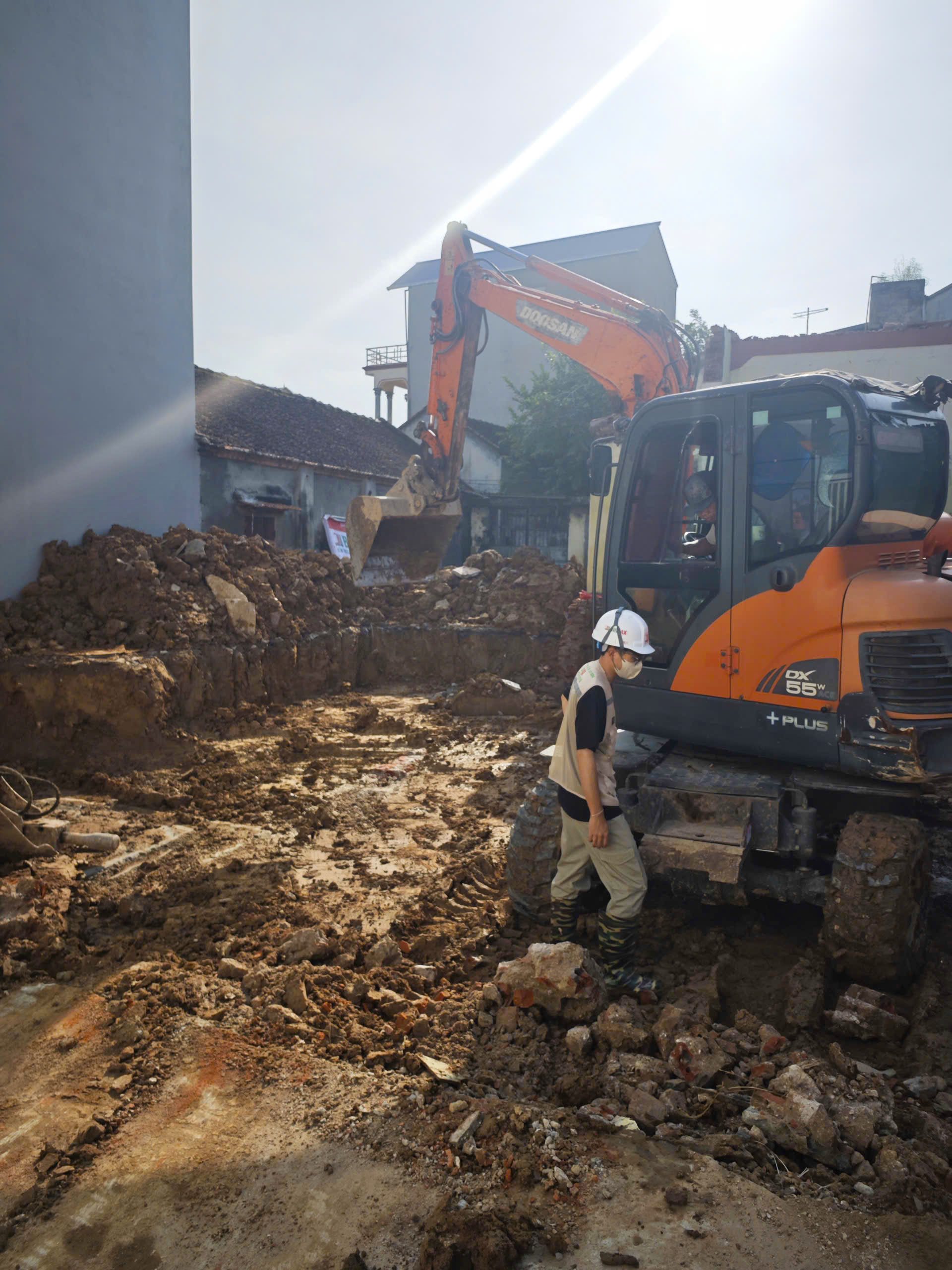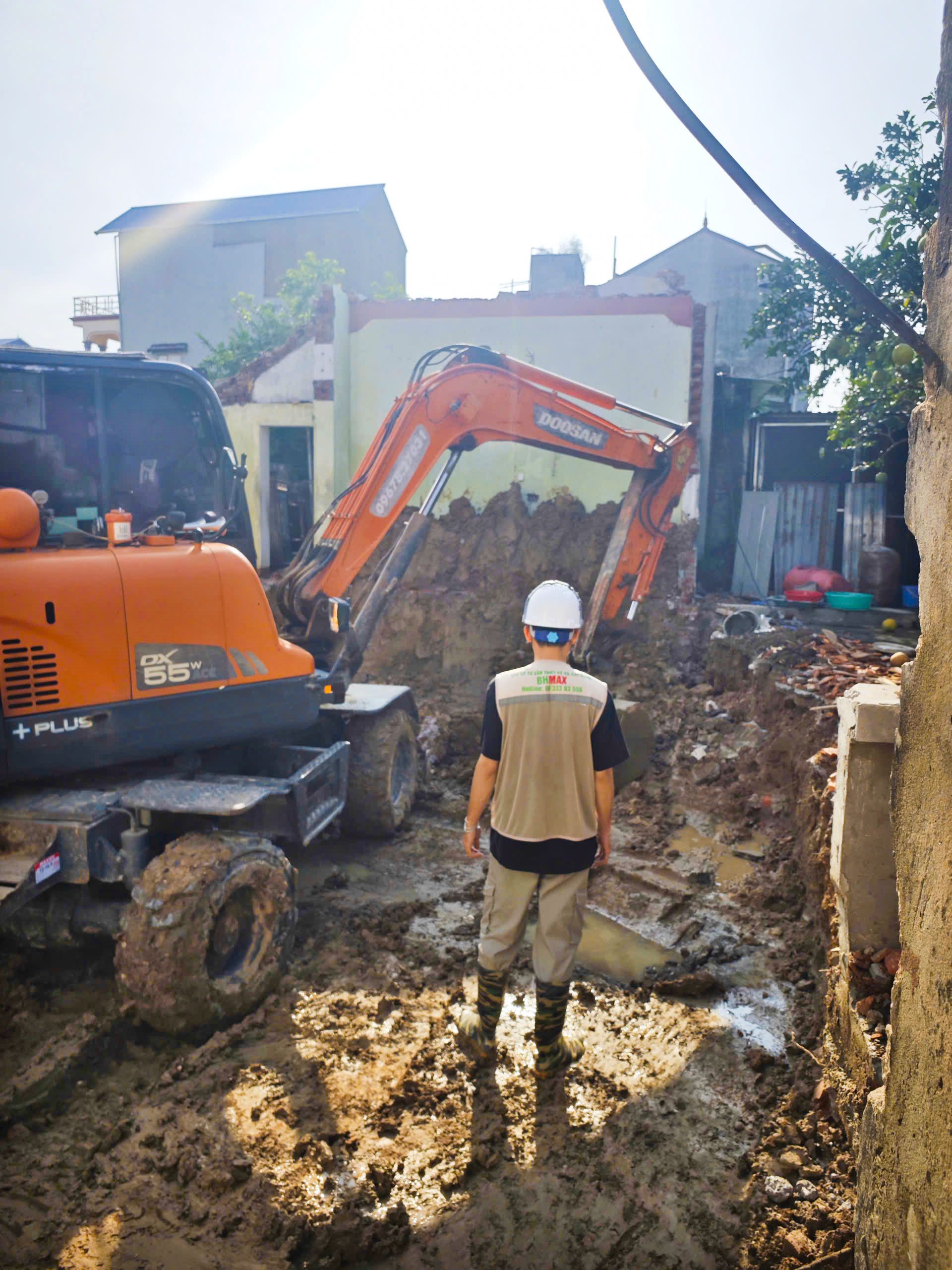 Sáng nay, đội thi công BHMAX đã có mặt tại Vân Đình để triển khai công tác múc móng – khởi đầu cho hành trình xây dựng công trình mới.