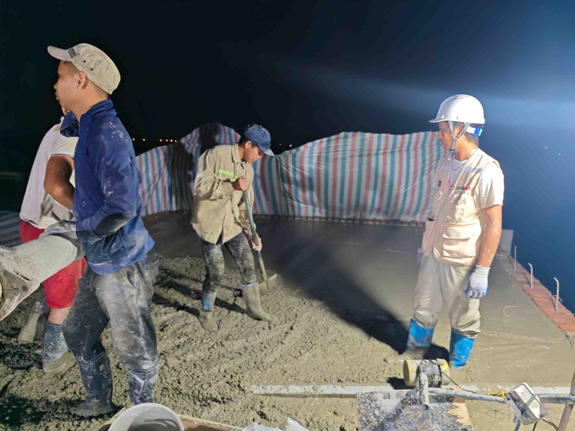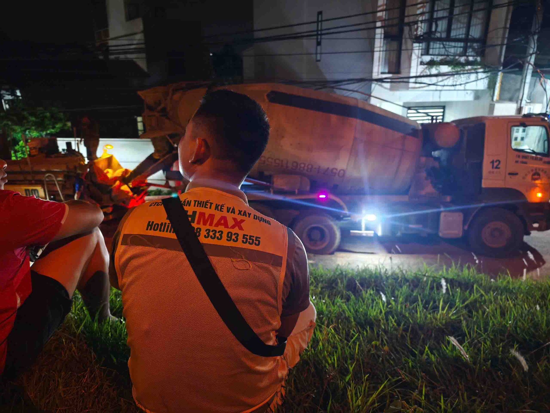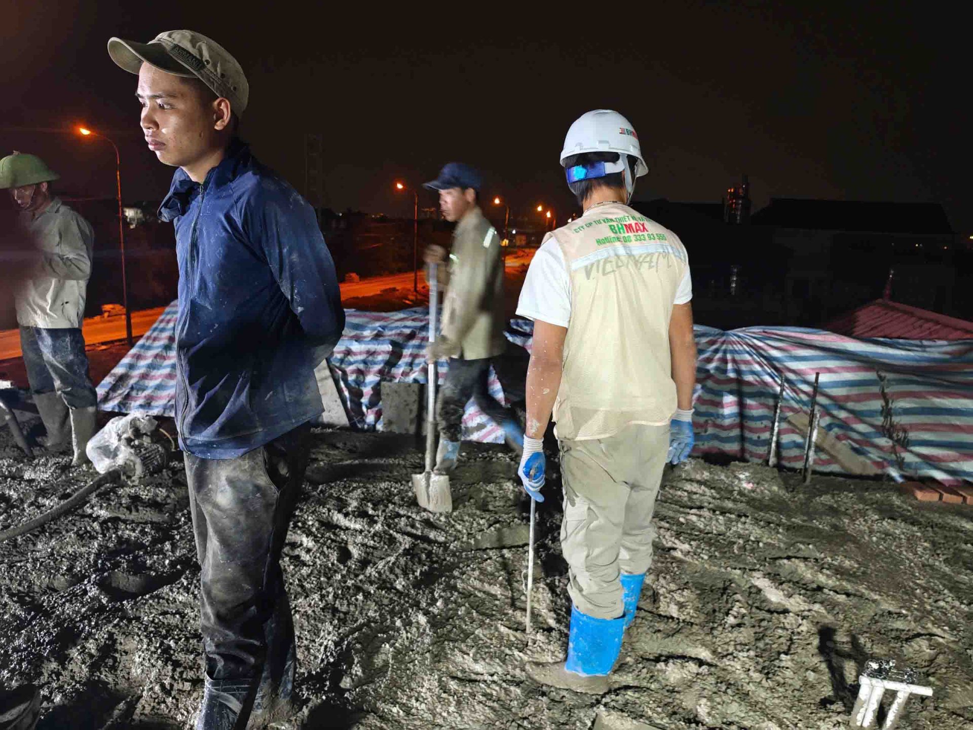 ? Hình ảnh ghi nhận cho thấy sự tận tâm của đội ngũ lao động trong từng thao tác, từ khâu trộn, đổ cho đến công tác rung, làm phẳng bề mặt. Sự hiện diện của kỹ sư giám sát trực tiếp trên công trường vào ban đêm không chỉ thể hiện tinh thần trách nhiệm mà còn là cam kết của công ty đối với chất lượng từng hạng mục công trình.