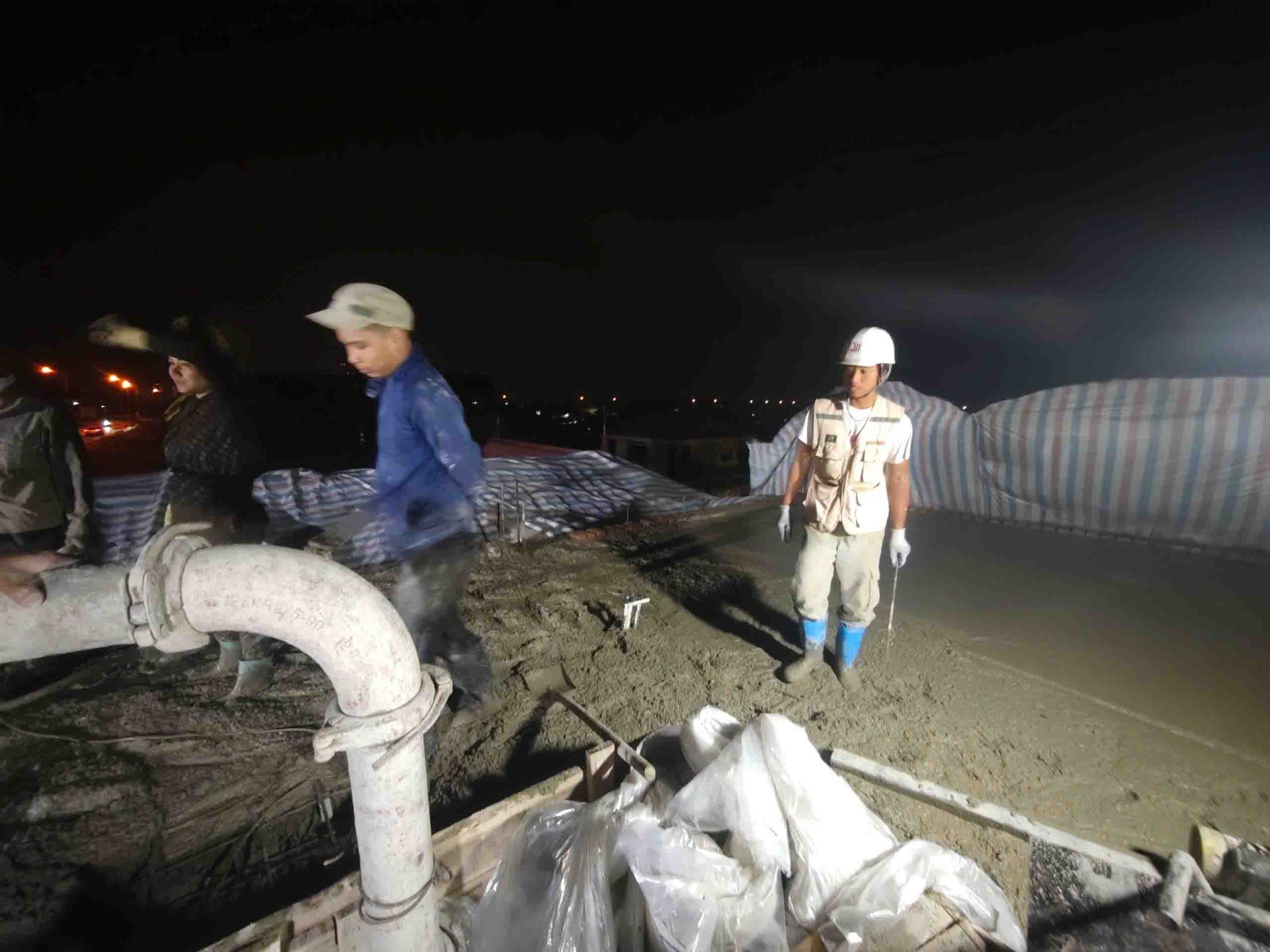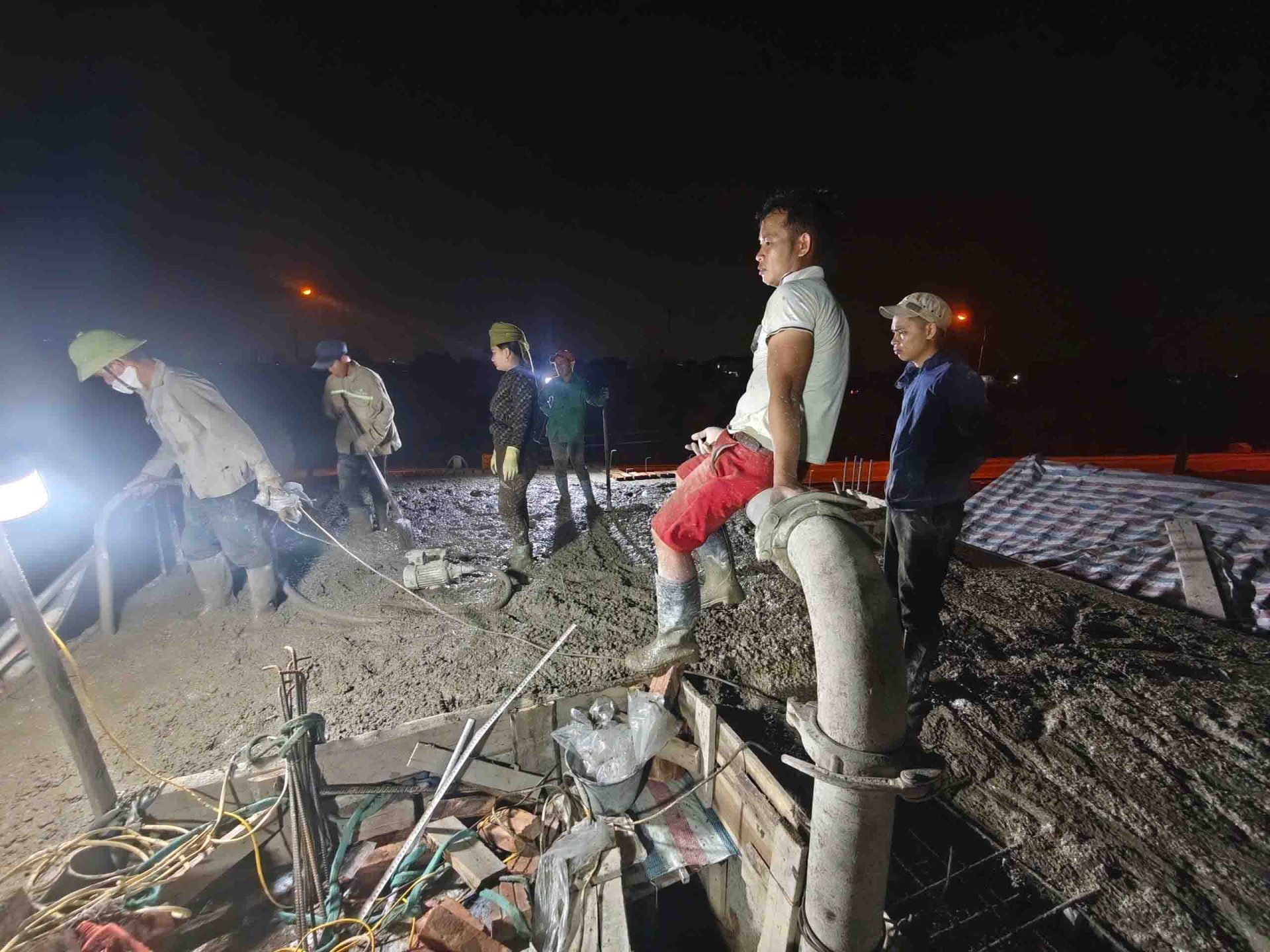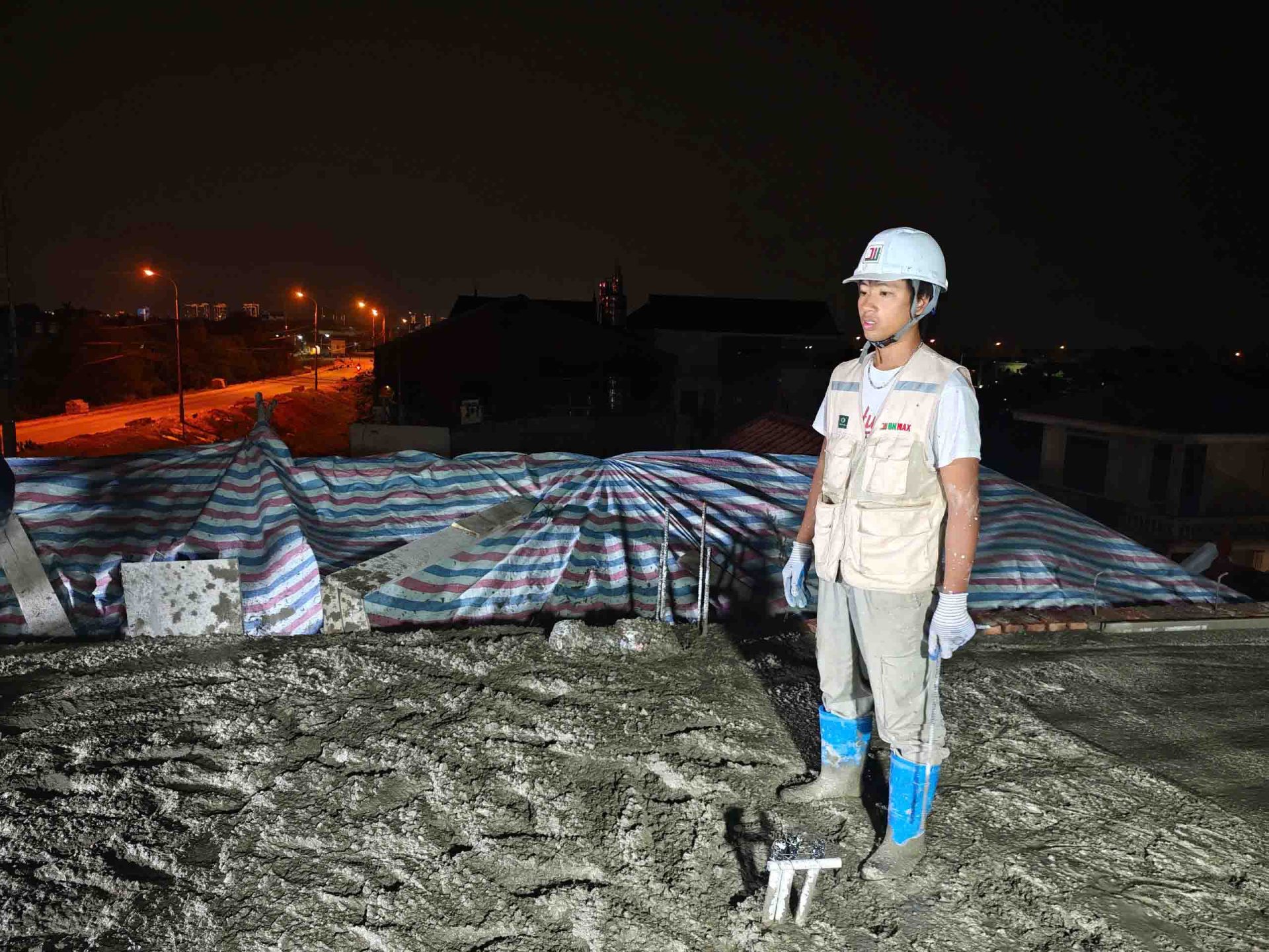 ? Hình ảnh ghi nhận cho thấy sự tận tâm của đội ngũ lao động trong từng thao tác, từ khâu trộn, đổ cho đến công tác rung, làm phẳng bề mặt. Sự hiện diện của kỹ sư giám sát trực tiếp trên công trường vào ban đêm không chỉ thể hiện tinh thần trách nhiệm mà còn là cam kết của công ty đối với chất lượng từng hạng mục công trình.