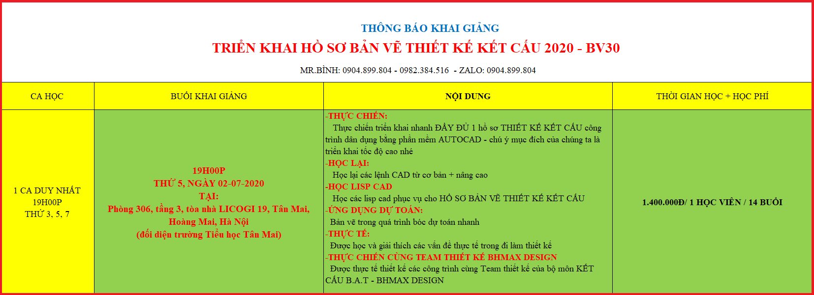 Trung tâm đào tạo BHMAX THÔNG BÁO lịch khai giảng khóa học: TRIỂN KHAI BẢN VẼ KẾT CẤU – BV30