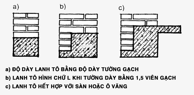 Lanh tô gạch được chia thành 3 loại: xây thẳng, xây kiểu cuốn vành lược và xây kiểu bán nguyệt.