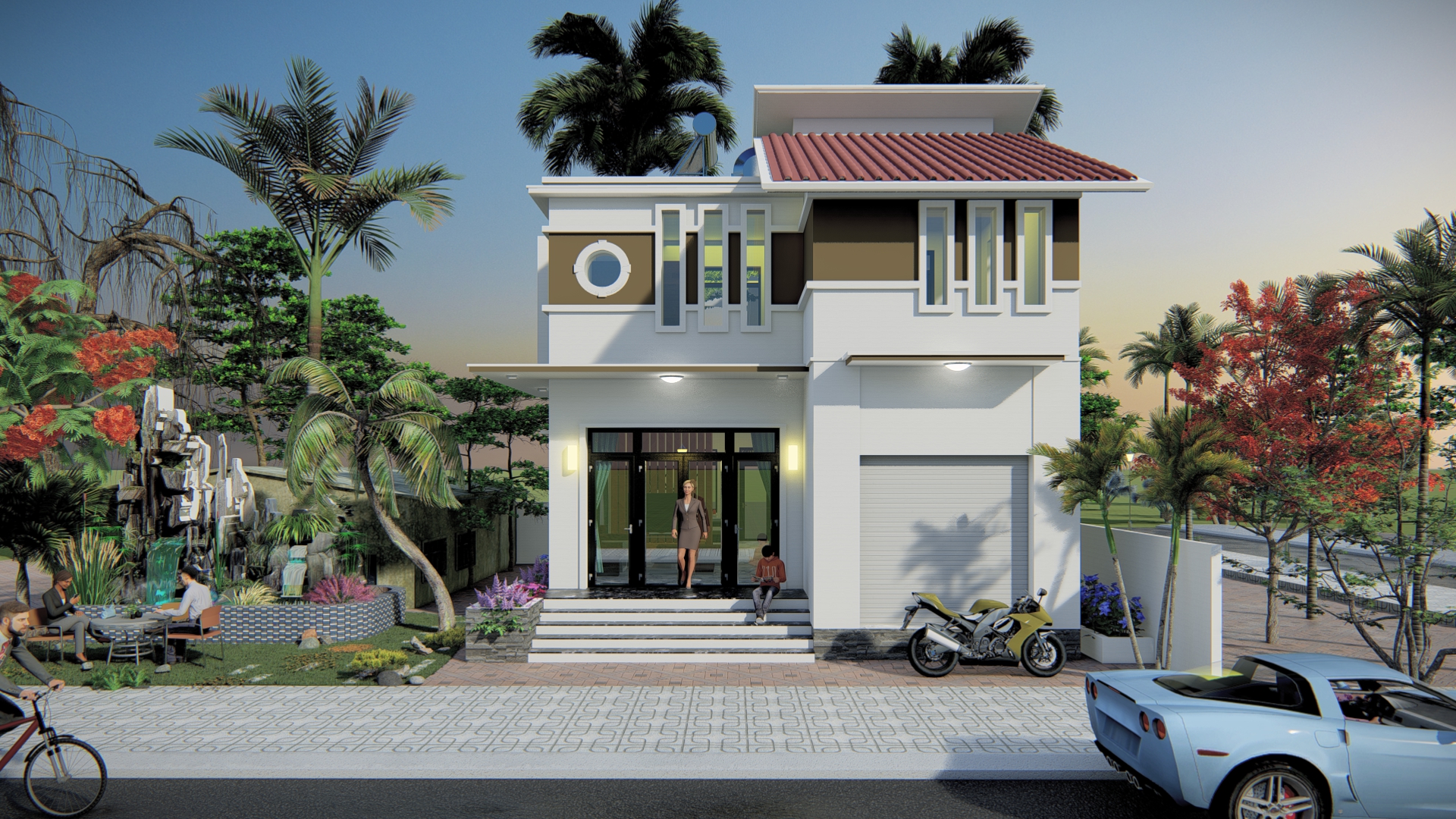 Những ngôi nhà mái thái, mái nhật đã được BHMAX giới thiệu rất nhiều đến các bạn. Hôm nay, chúng tôi sẽ tiếp tục với một ngôi nhà mang phong cách kiến trúc hiện đại có pha trộn giữa mái chéo và mái bằng, đó là nhà anh Phong tại Kiên Giang.