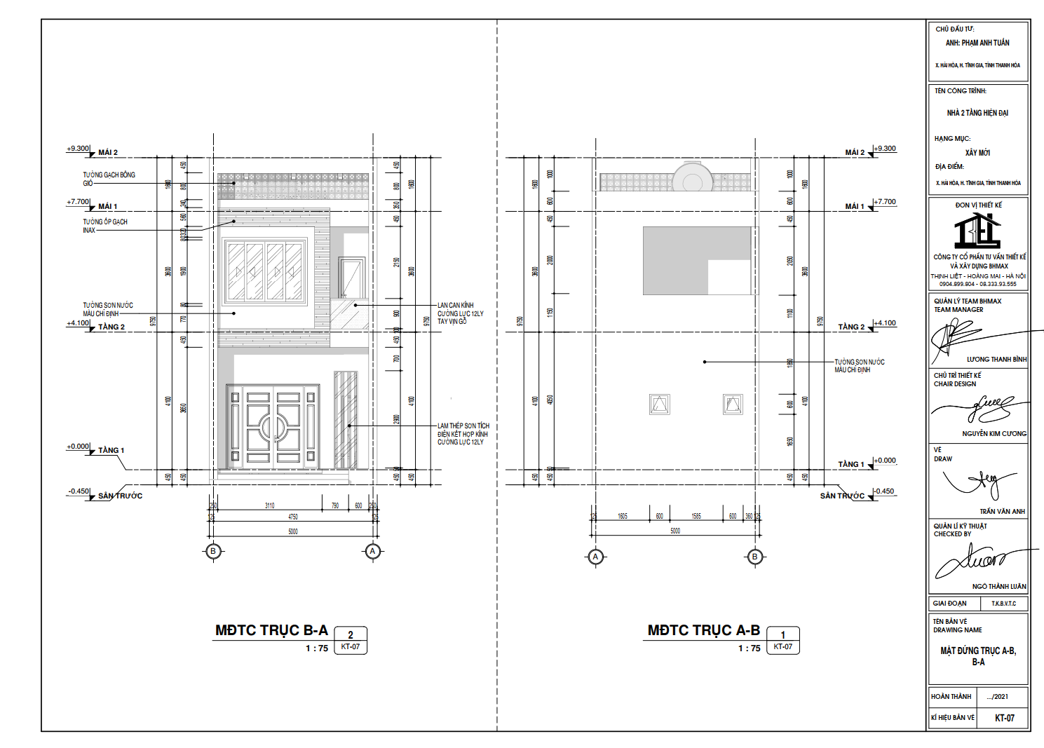 | Chủ đầu tư: Anh Tuấn | Số tầng: 2 |
