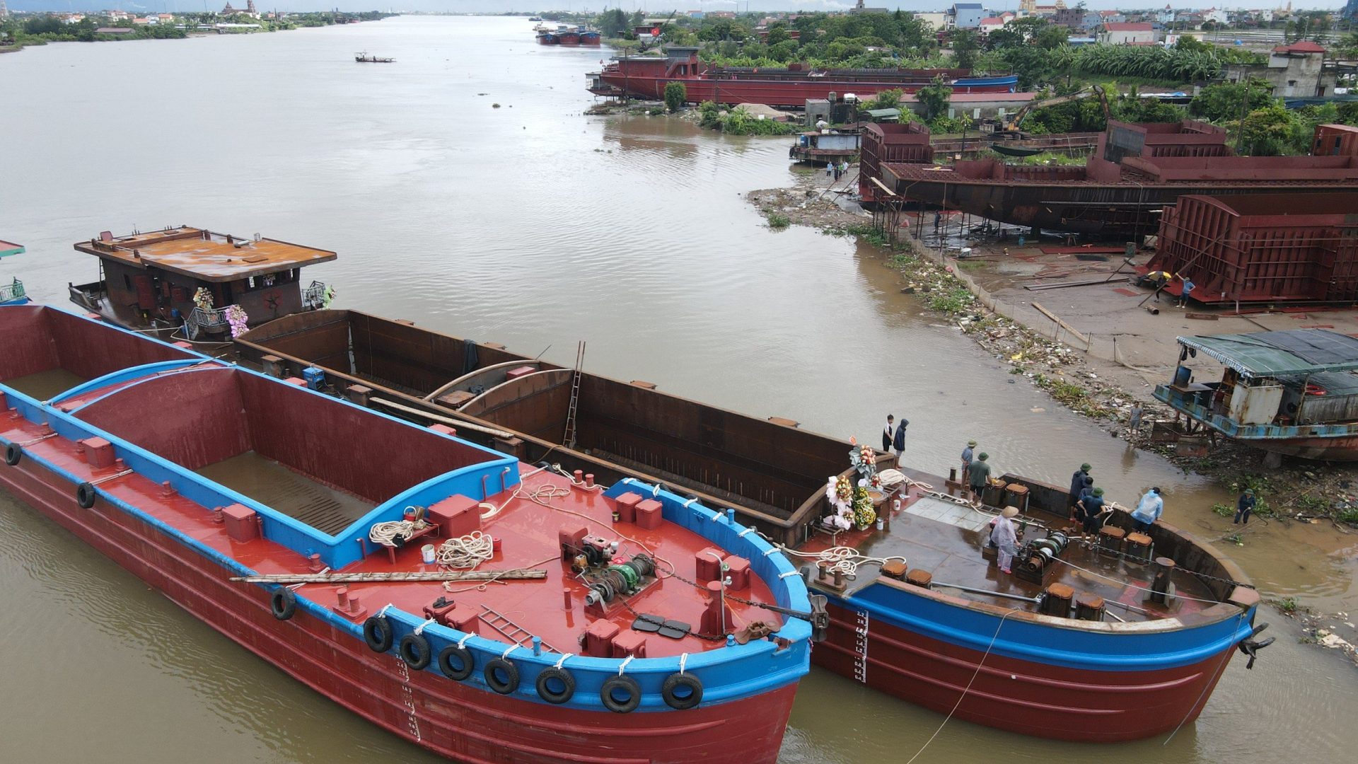Với sự hiện diện của nhiều công nhân và kỹ sư, những hình ảnh từ lễ hạ thủy tàu thể hiện rõ nét quá trình chuẩn bị kỹ lưỡng và sự chuyên nghiệp của BHMAX. Hai chiếc tàu lớn, sơn màu đỏ và xanh dương nổi bật, được neo đậu bên bờ sông, sẵn sàng cho nghi lễ quan trọng này. Các công nhân của BHMAX đã kiểm tra và đảm bảo mọi chi tiết kỹ thuật đều hoàn hảo, từ kết cấu cho đến độ bền vững của con tàu.